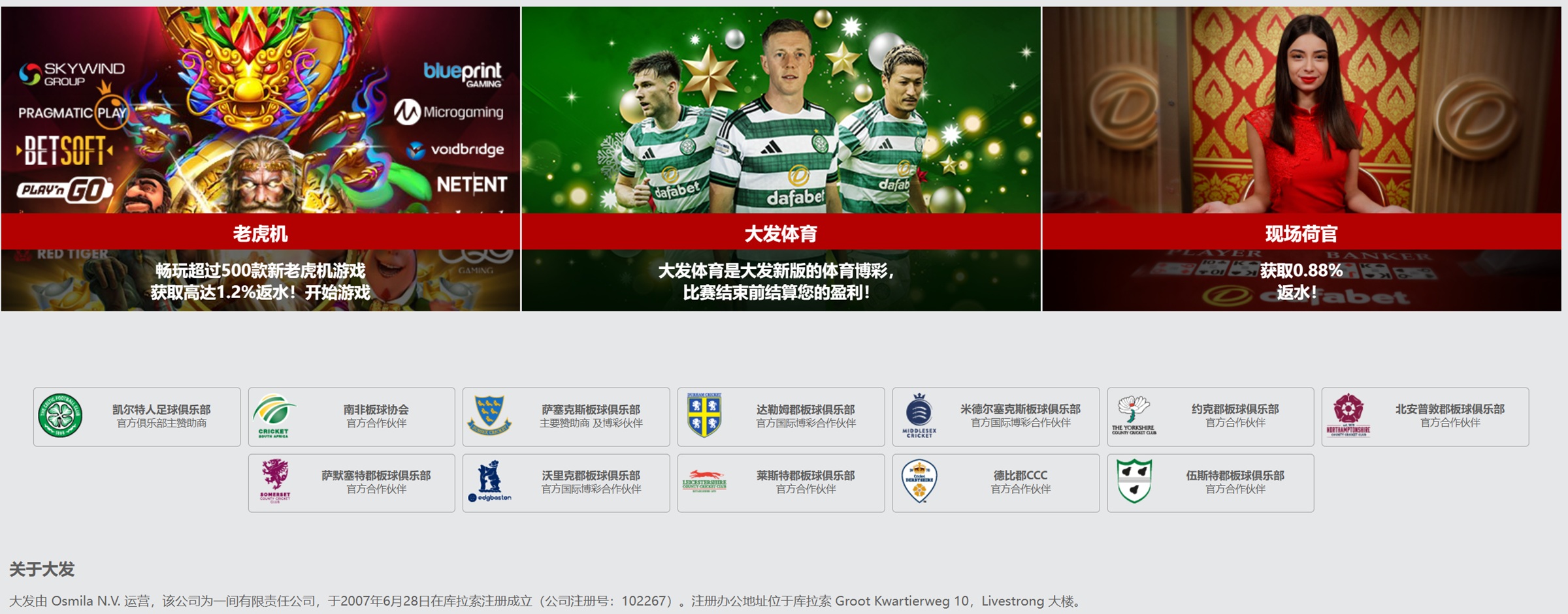 大发体育官网,大发Dafabet自2004年成立以来,大发官网已经发展成为亚洲领先的在线娱乐游戏平台之一。我们专注于为亚太地区的玩家提供丰富多样的线上游戏体验,包括体育博彩、真人赌场及老虎机等。官网严格遵循各地的法律法规,持有合法牌照并接受权威机构的监管,确保为会员提供一个安全可靠的游戏环境。